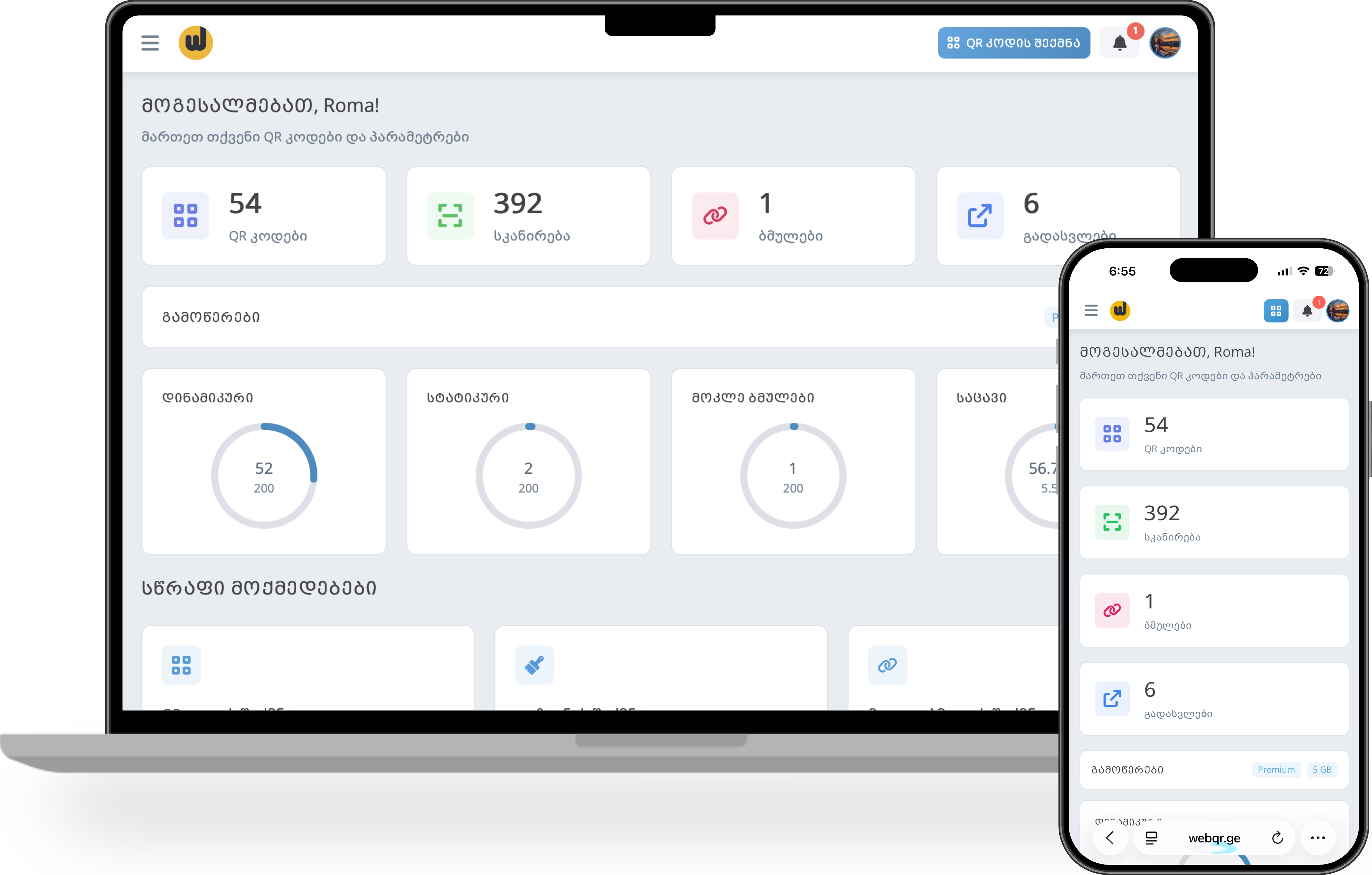 • Automatically generated QR codes for each link